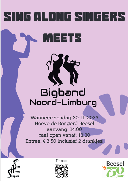 De gemeente Beesel viert dit jaar haar “750-jarig bestaan” en maakt het mogelijk om een bijzonder concert te organiseren. Twee springlevende verenigingen bundelen hun krachten, het koor “Sing Along Singers” en de “Big Band Noord-Limburg”.